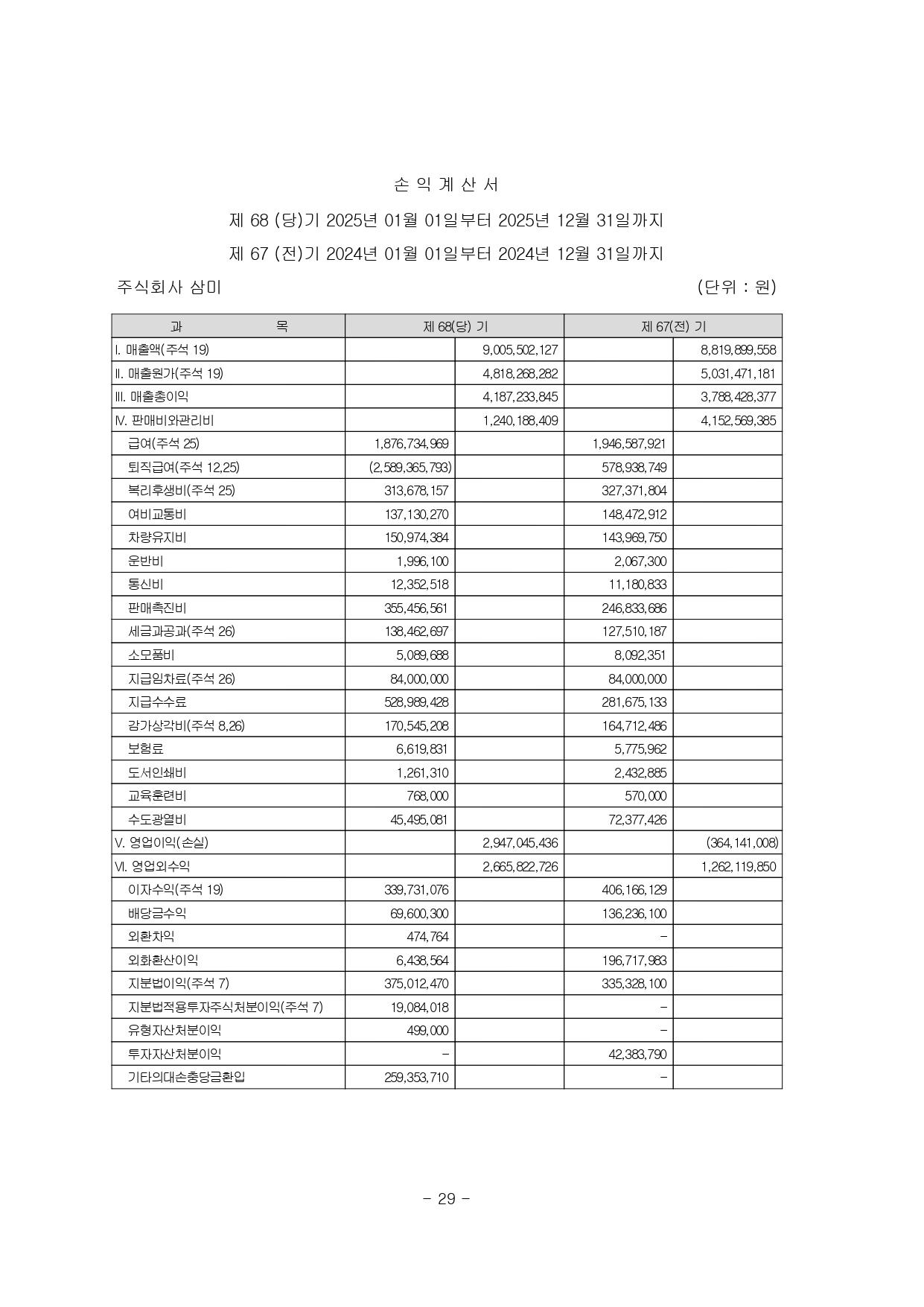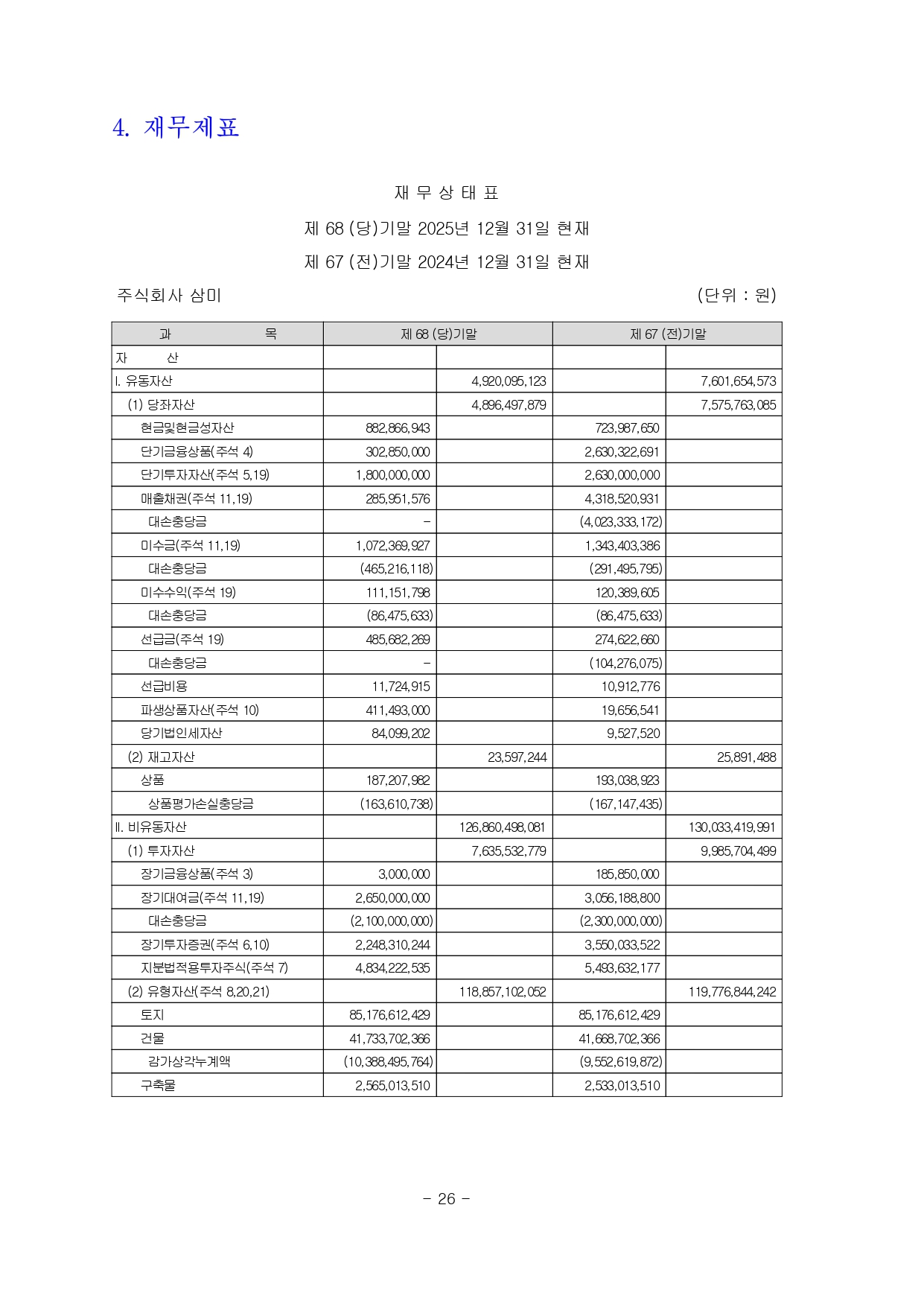 주식회사 삼미 제66기 결산공고