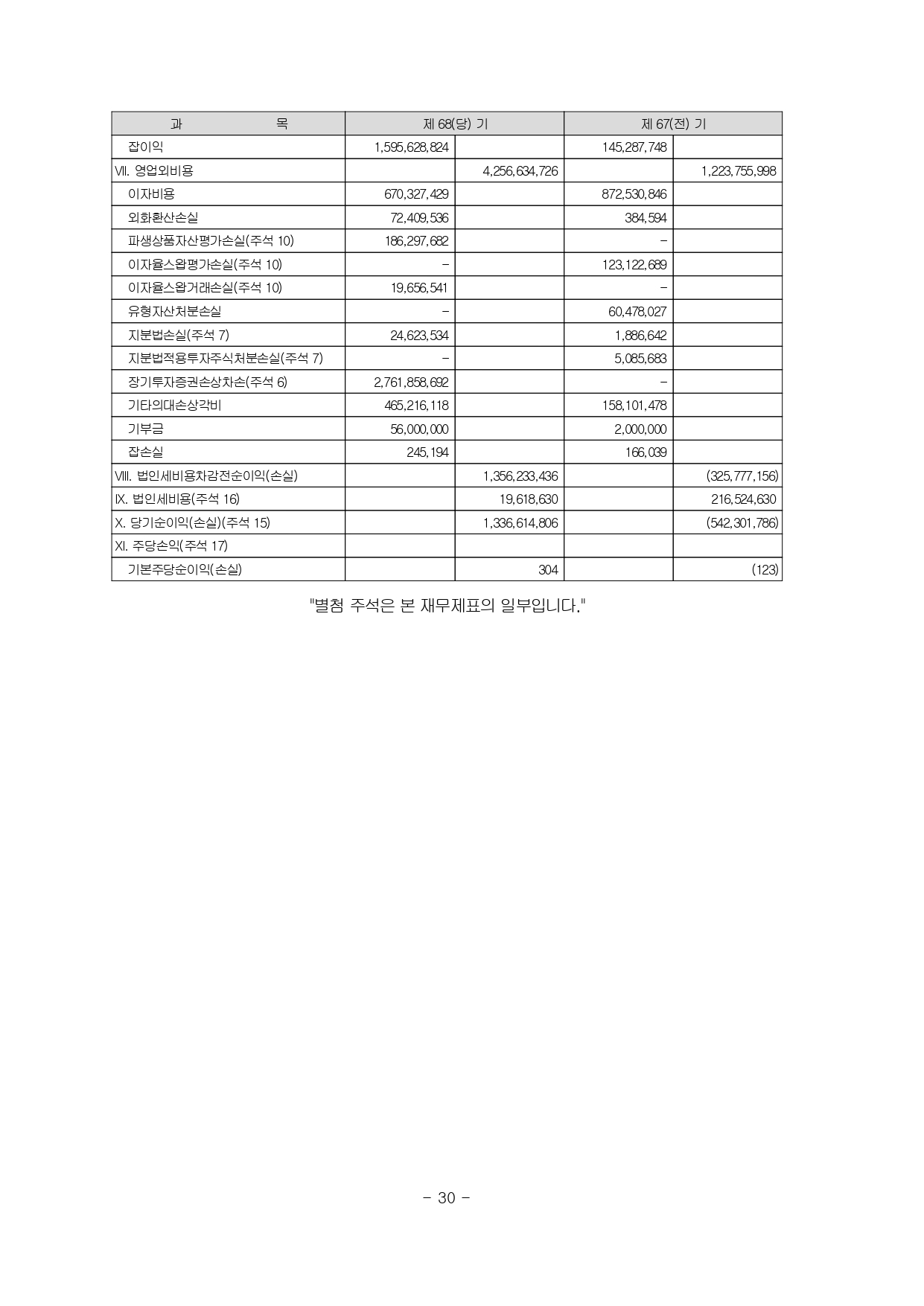 제68기 결산공고